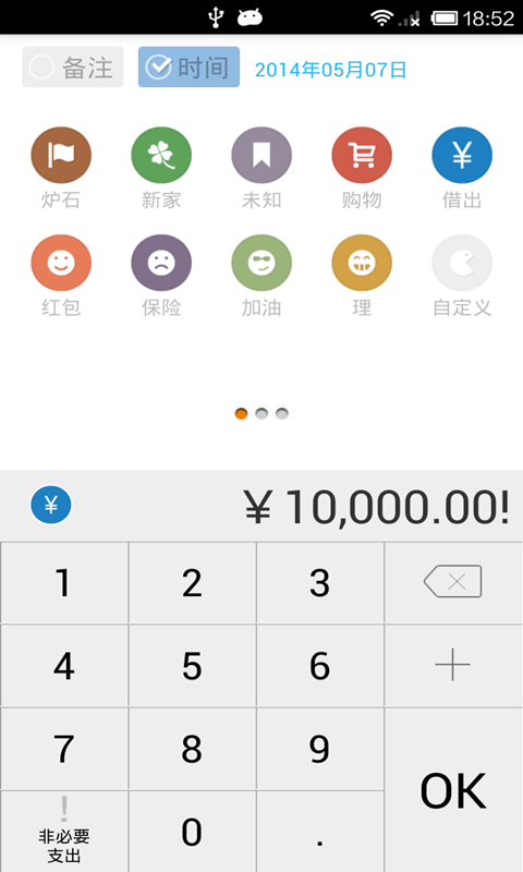 在添加記錄的時(shí)候,還有一個(gè)“非必要支出”按鈕,躲手黨們可以考慮。