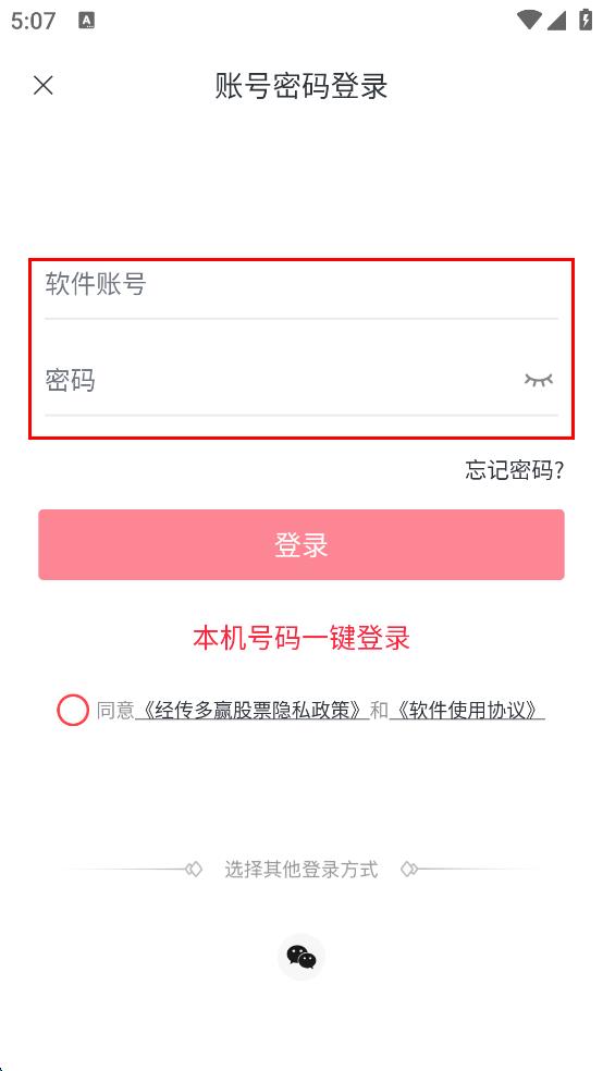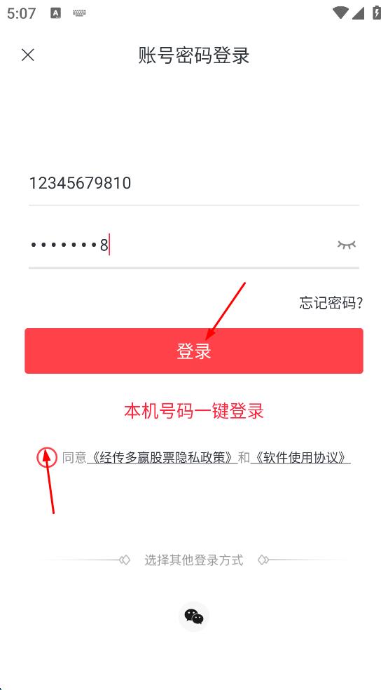 4、完成賬號和密碼輸入以及協(xié)議勾選后,點擊“登錄”按鈕,即可嘗試登錄經傳多贏股票APP。