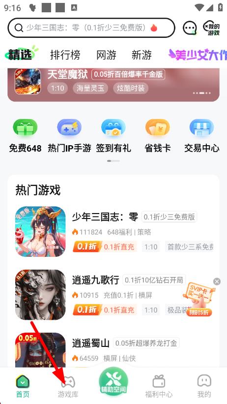 1、打開(kāi)3733游戲盒,點(diǎn)擊底部導(dǎo)航欄中的游戲庫(kù),進(jìn)入游戲查找界面。
