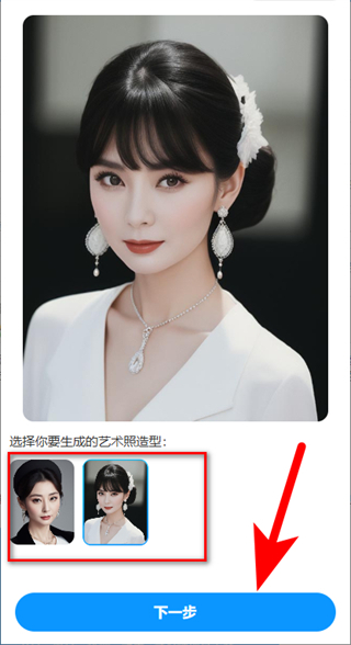 4、選擇好造型后,點擊下一步,等待系統(tǒng)生成藝術(shù)照即可。