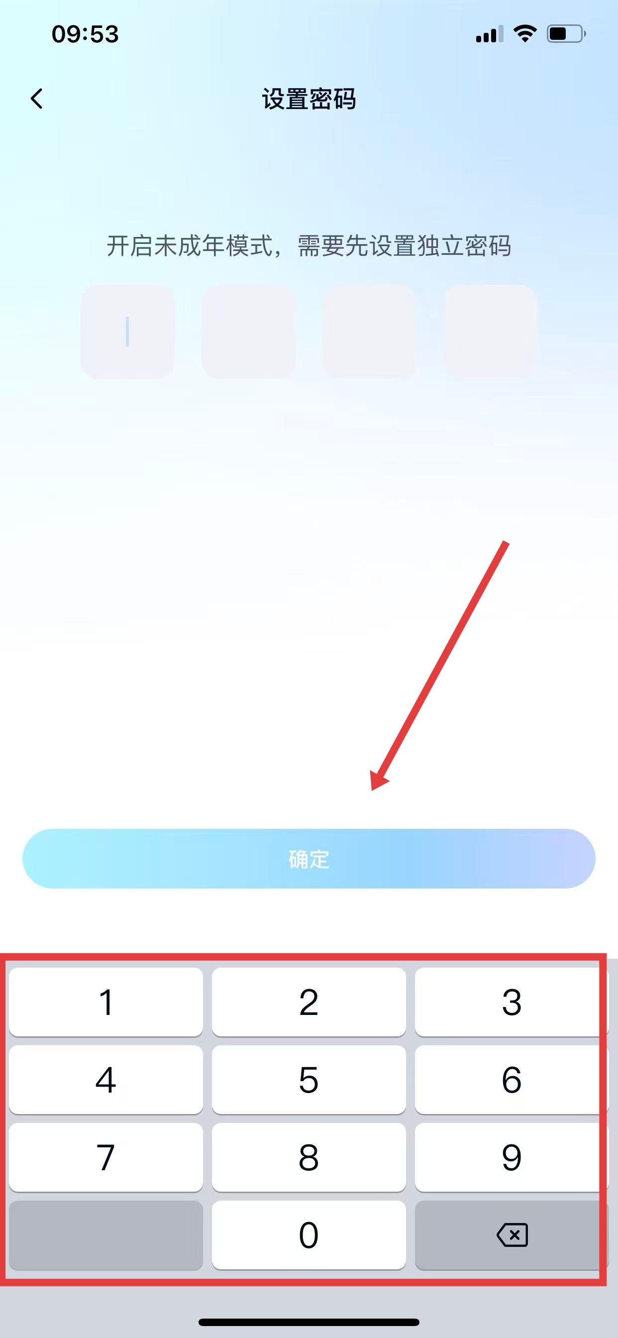 3、按照提示設置獨立密碼,設置完成后點擊確定,即可成功開啟青少年模式。