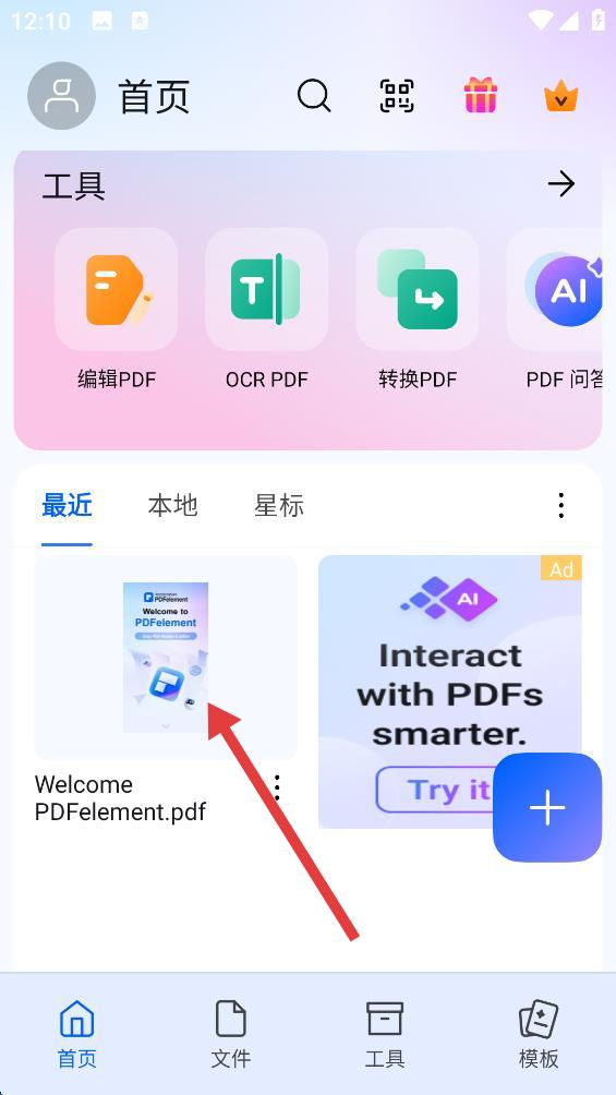 1、打開PDFelement應(yīng)用,在首頁(yè)最近列表中,點(diǎn)擊要去除水印的PDF文件。