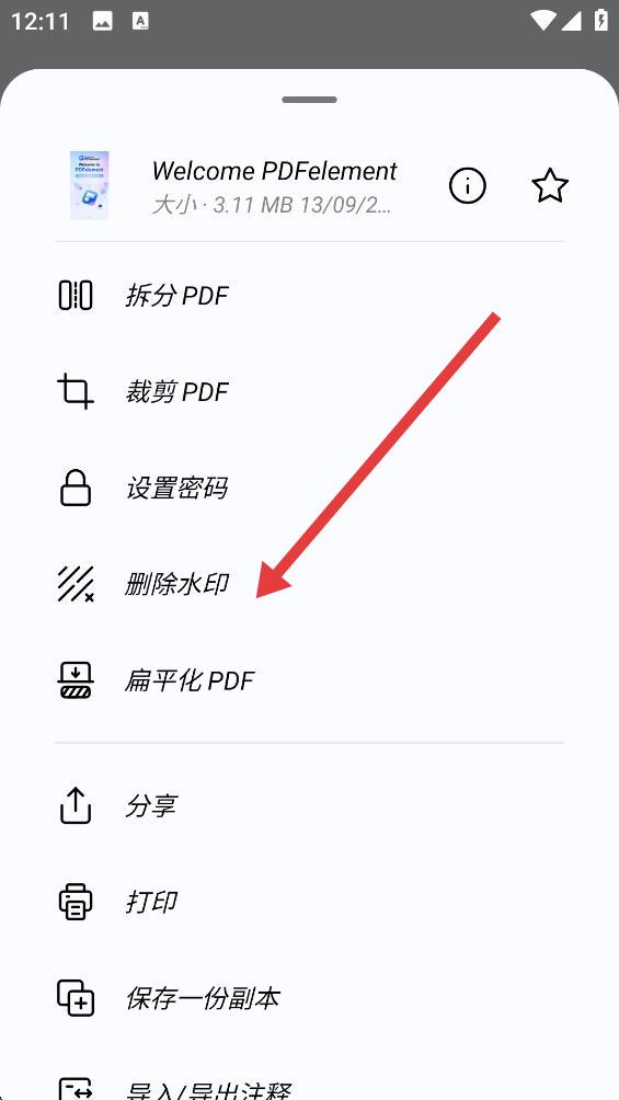 3、在彈出的操作菜單中,向下滑動(dòng)找到刪除水印選項(xiàng)。