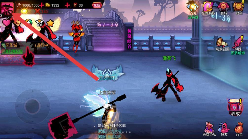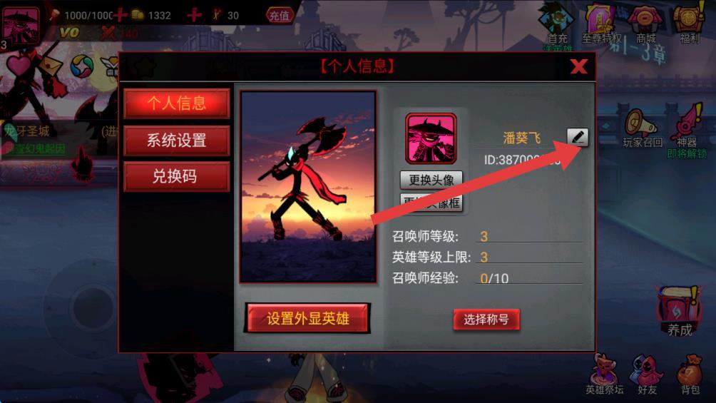 2、在游戲主界面左上角,點(diǎn)擊帶有角色頭像的區(qū)域,打開(kāi)個(gè)人信息界面。