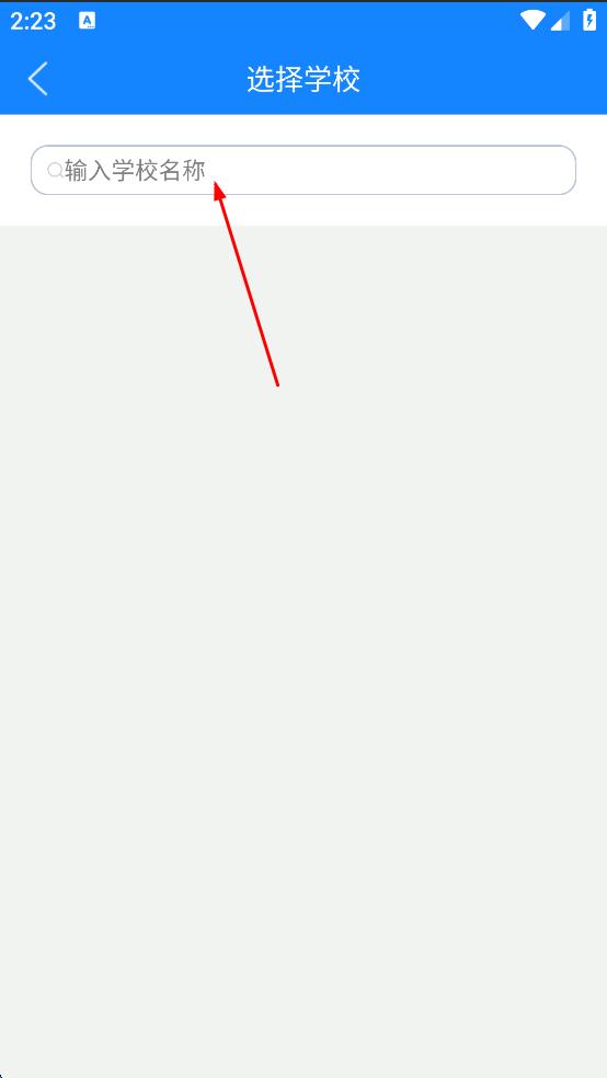 2、在選擇學(xué)校頁面,點擊輸入框,輸入學(xué)校名稱,完成學(xué)校選擇,進入登錄頁面。