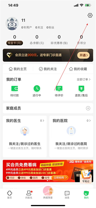 2、進(jìn)入我的頁(yè)面后,點(diǎn)擊右上角的設(shè)置圖標(biāo)。
