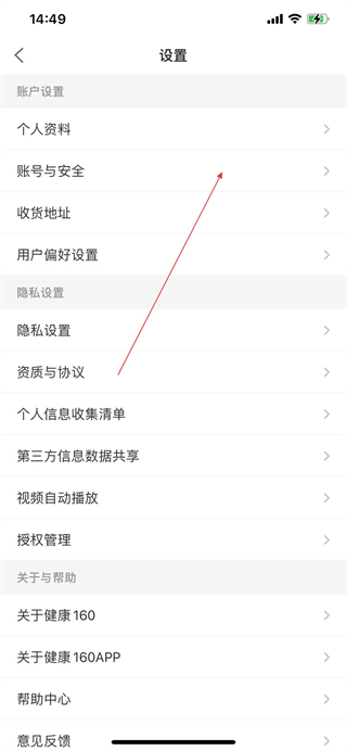 3、在設(shè)置頁(yè)面中,點(diǎn)擊賬號(hào)與安全選項(xiàng)。