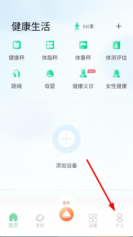 1、打開好體知體脂秤app,點擊底部導航欄最右側的個人圖標,進入個人相關設置界面。