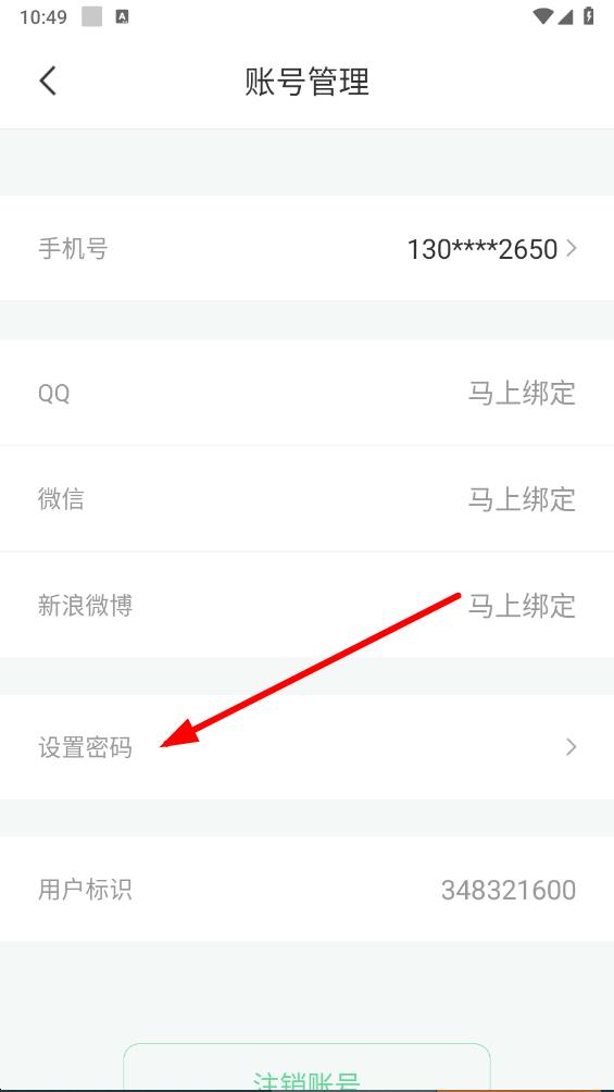 3、在賬號管理頁面里,點擊設置密碼選項,進入設置登錄密碼界面。