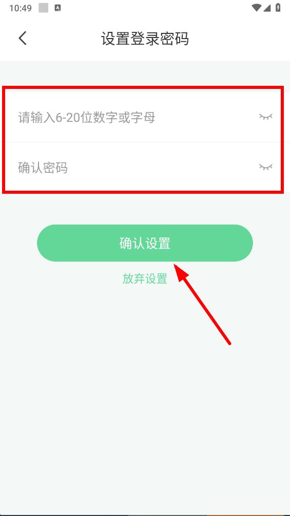 4、在設置登錄密碼界面,輸入密碼,再次輸入進行確認,然后點擊確認設置按鈕,即可成功設置密碼。
