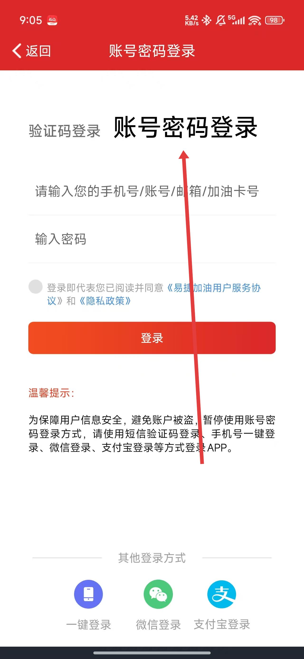 3、可以通過點擊賬號密碼登錄按鈕后,切換登錄方式在下面的輸入框輸入對應(yīng)信息。