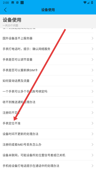 3、在設(shè)備使用問題頁面中,下滑找到手表定位不準(zhǔn)問題,點(diǎn)擊進(jìn)入查看解決方法。
