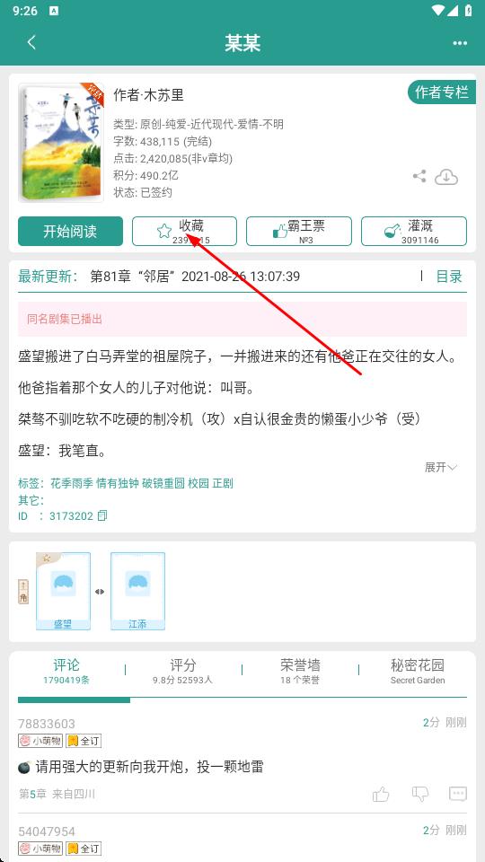 1、進入書城界面,找到目標小說如《某某》),點擊進入書籍詳情頁,查看作品信息與內(nèi)容簡介。
