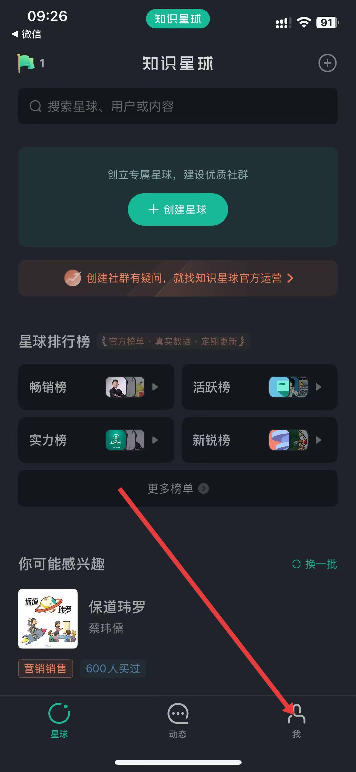 1、打開知識星球App,點擊底部我進入個人頁面。