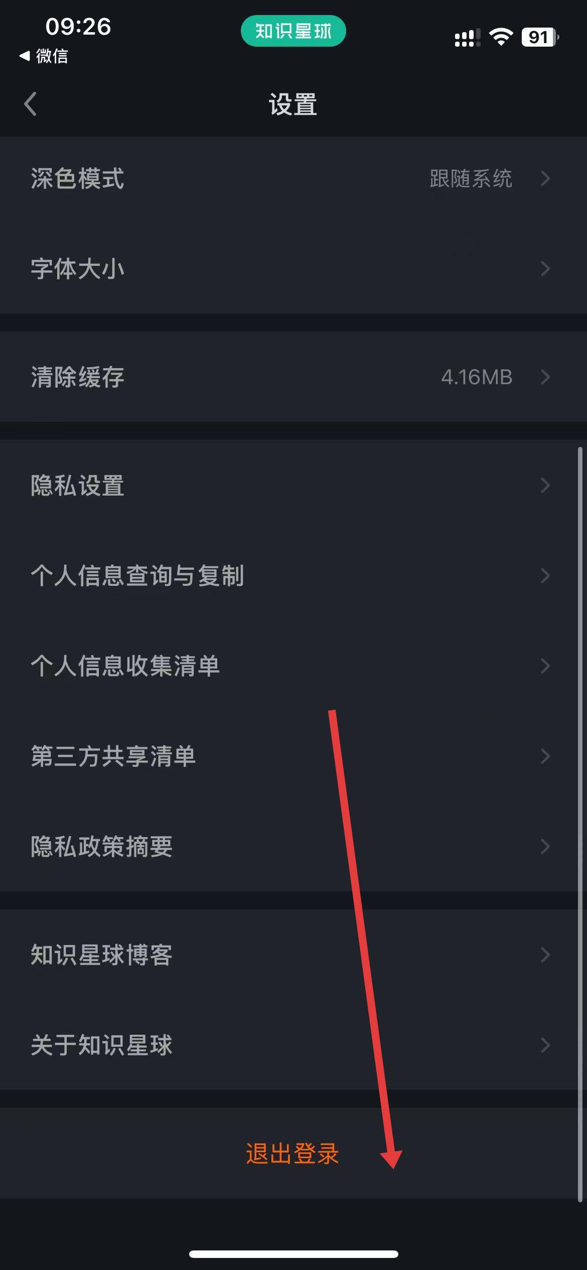 3、進入設(shè)置頁面,點擊底部退出登錄按鈕。
