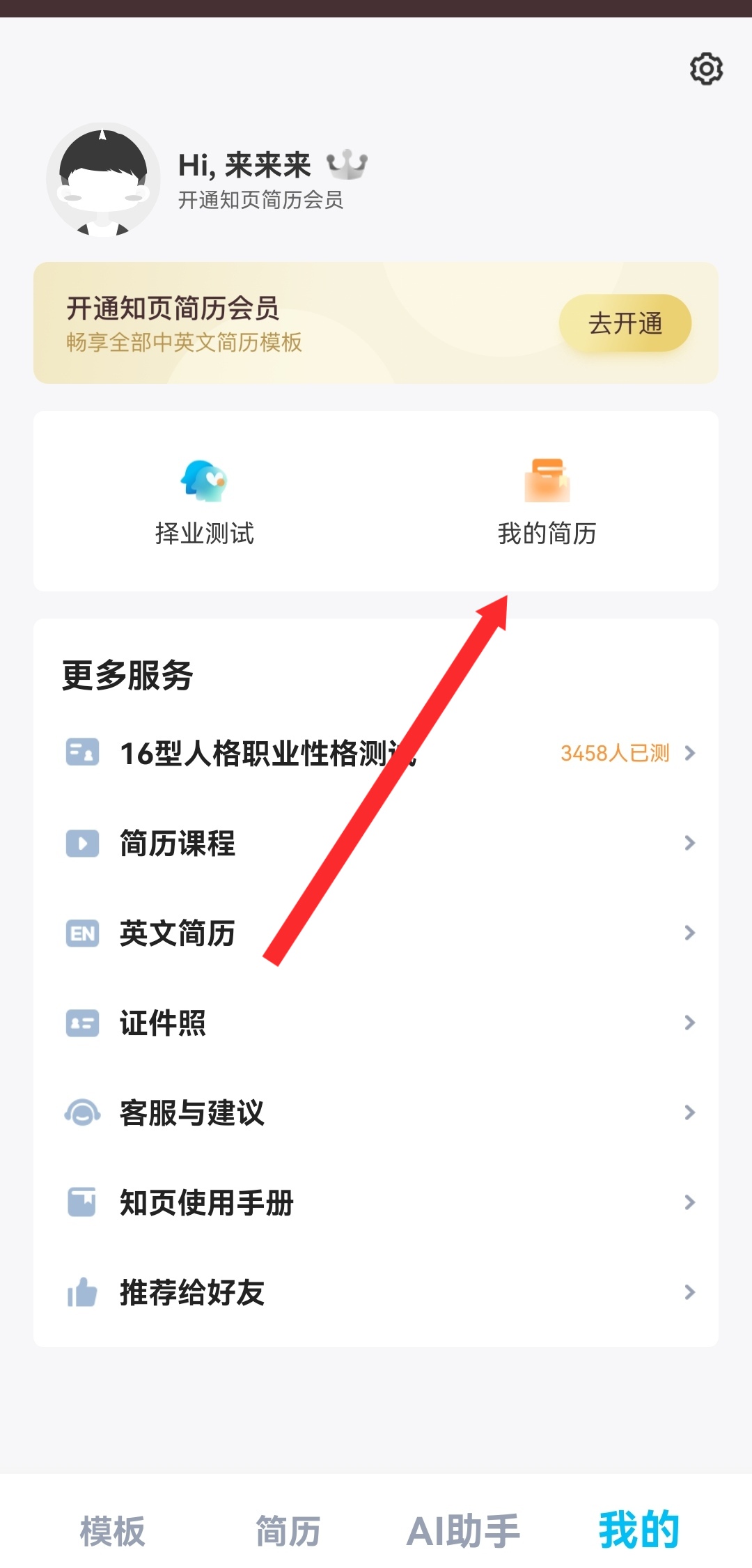 1、進入我的頁面后,需要點擊我的簡歷,進入簡歷管理的頁面。