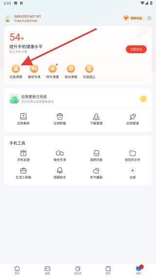 2、在我的頁面內(nèi),點(diǎn)擊垃圾清理的按鈕。