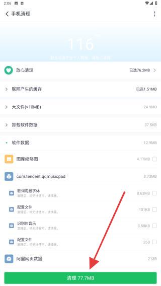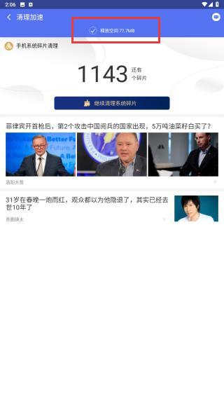 4、清理后,頁面會呈現(xiàn)釋放空間77.7MB的內(nèi)存。