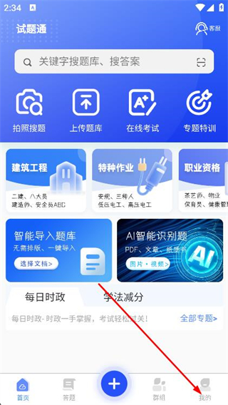 1、打開試題通app,點(diǎn)擊底部導(dǎo)航欄的我的選項(xiàng)。