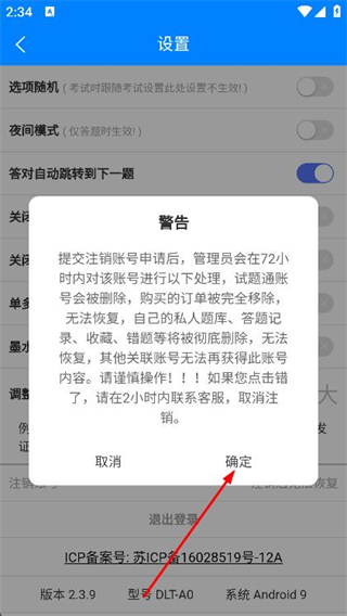 4、在彈出的提示框中,點(diǎn)擊確定,即可提交賬號(hào)注銷申請(qǐng)。