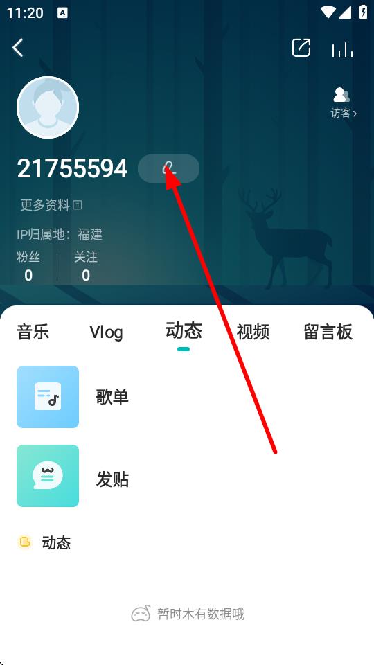 2、在個人主頁中點擊昵稱旁的編輯圖標,進入修改個人信息頁面。