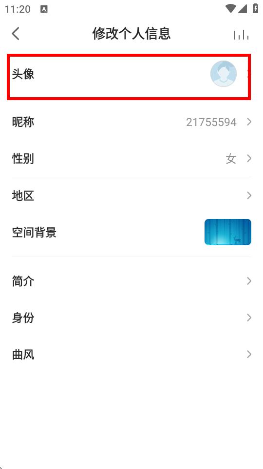 3、在修改個人信息頁面點擊頭像選項,進入圖片選擇界面。