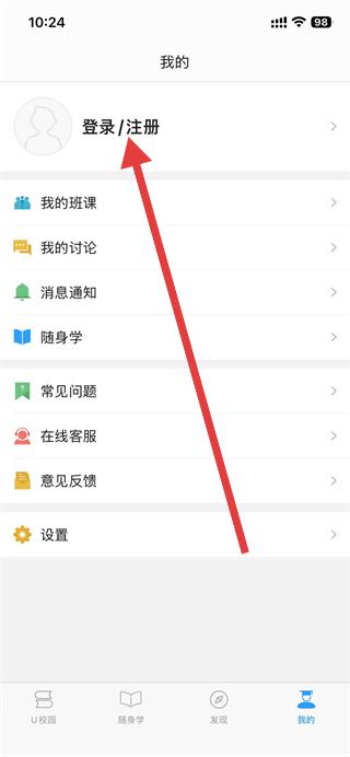 2、在我的頁面中,找到并點擊上方登錄/注冊選項。