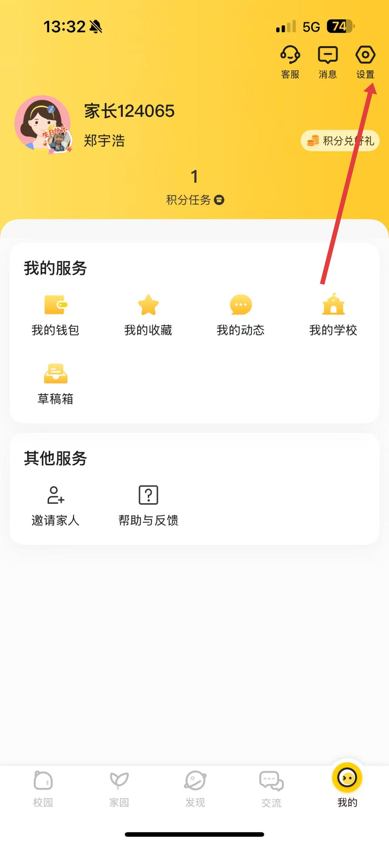 1、在個(gè)人頁(yè)面右上角,點(diǎn)擊設(shè)置圖標(biāo)進(jìn)入設(shè)置界面。