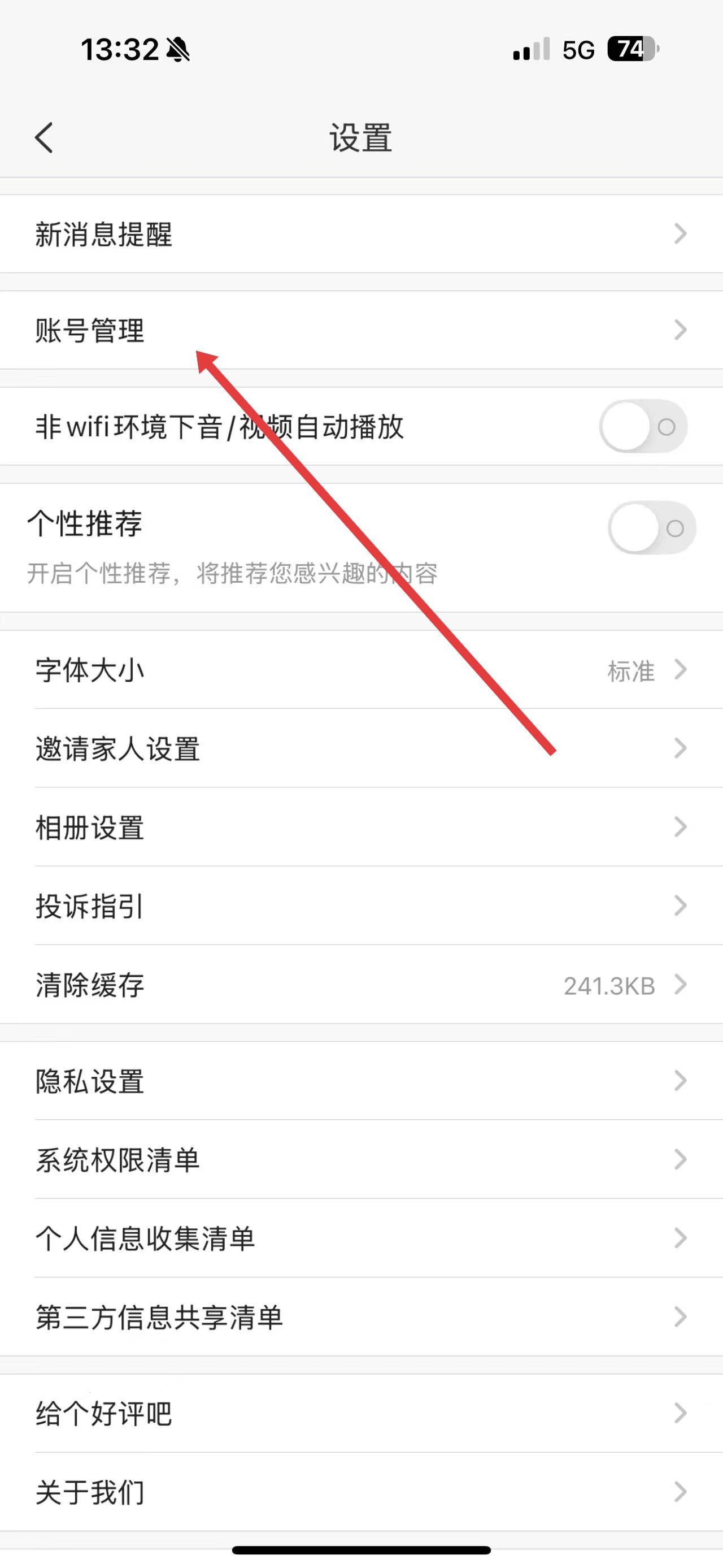 2、在設(shè)置界面中,找到并點(diǎn)擊賬號(hào)管理選項(xiàng)。