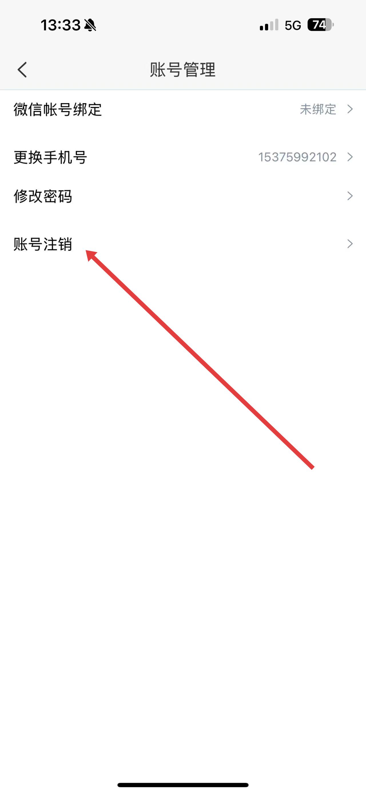 3、進(jìn)入賬號(hào)管理頁(yè)面后,點(diǎn)擊賬號(hào)注銷(xiāo)選項(xiàng)。