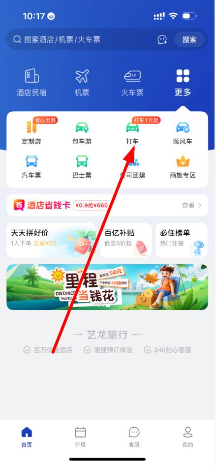 2、在首頁(yè)點(diǎn)擊更多選項(xiàng),找到打車(chē)功能入口。