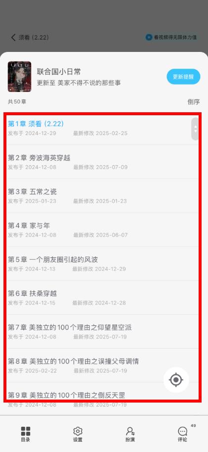 4、在目錄列表中,即可查看該小說(shuō)的全部章節(jié)目錄。