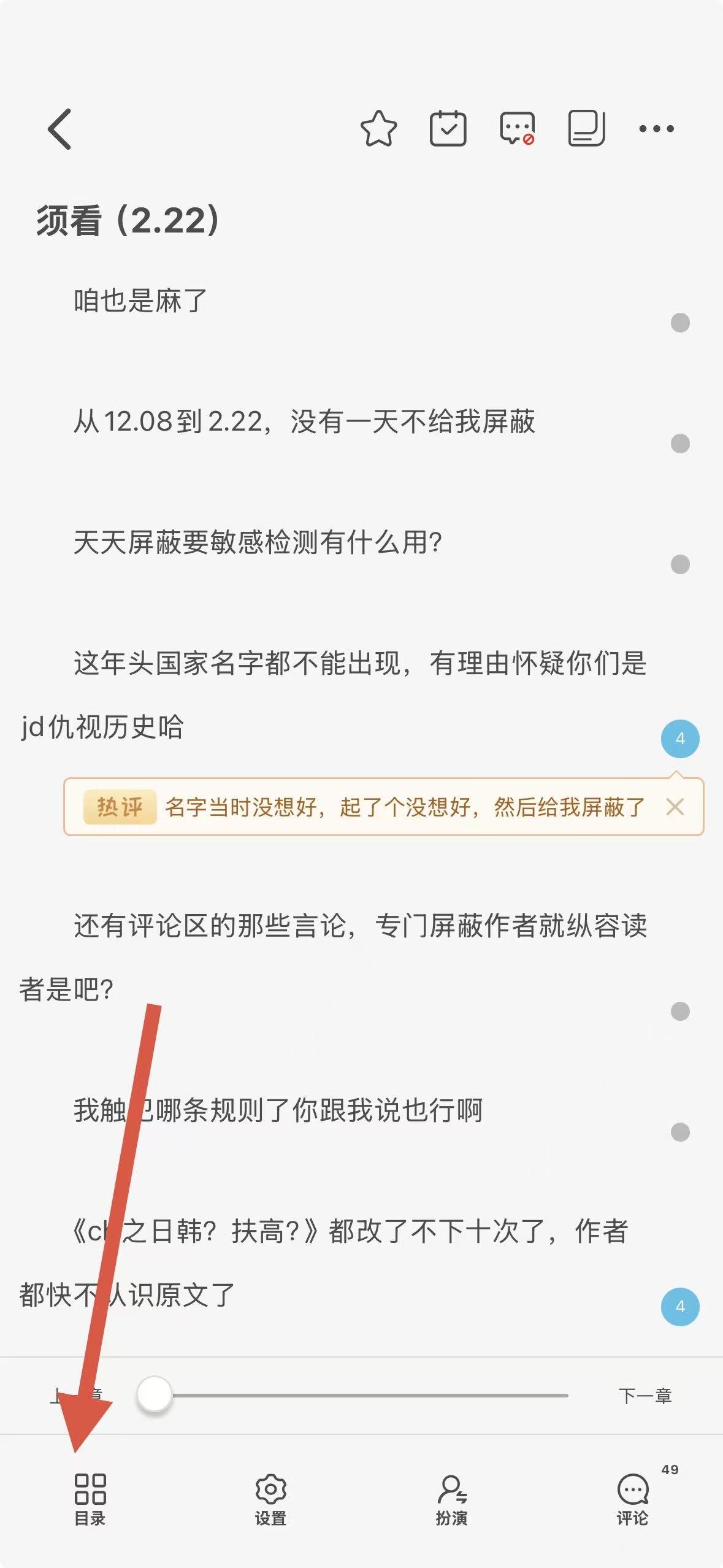 3、在小說(shuō)閱讀界面,點(diǎn)擊左下角目錄選項(xiàng),展開目錄列表。