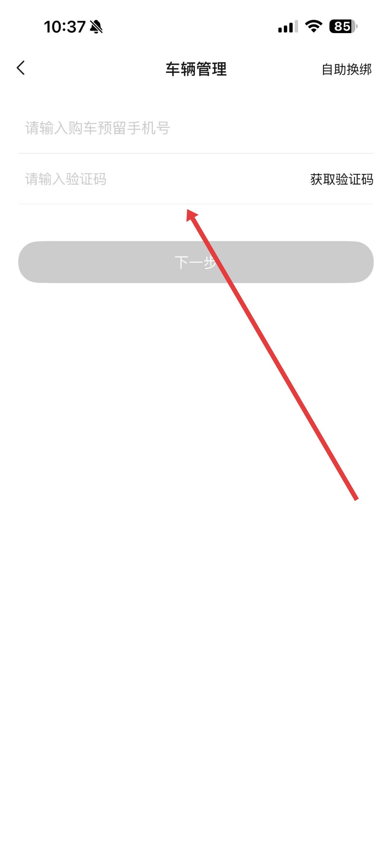 4、在綁定頁面,按照提示輸入購車預(yù)留手機號,點擊獲取驗證碼,輸入收到的驗證碼后,點擊下一步,按指引完成車輛綁定操作。