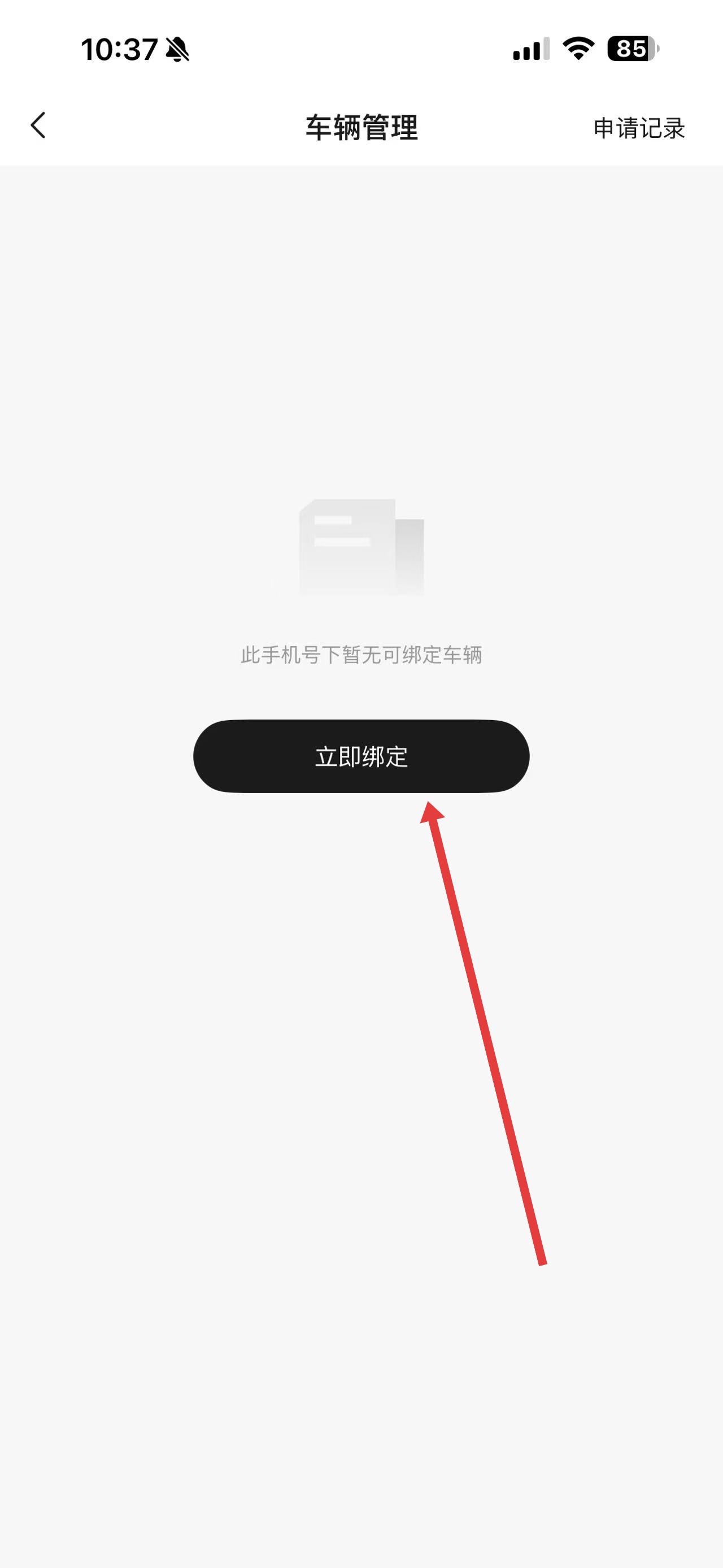3、在車輛管理界面中,若沒有綁定車輛,點擊立即綁定按鈕。