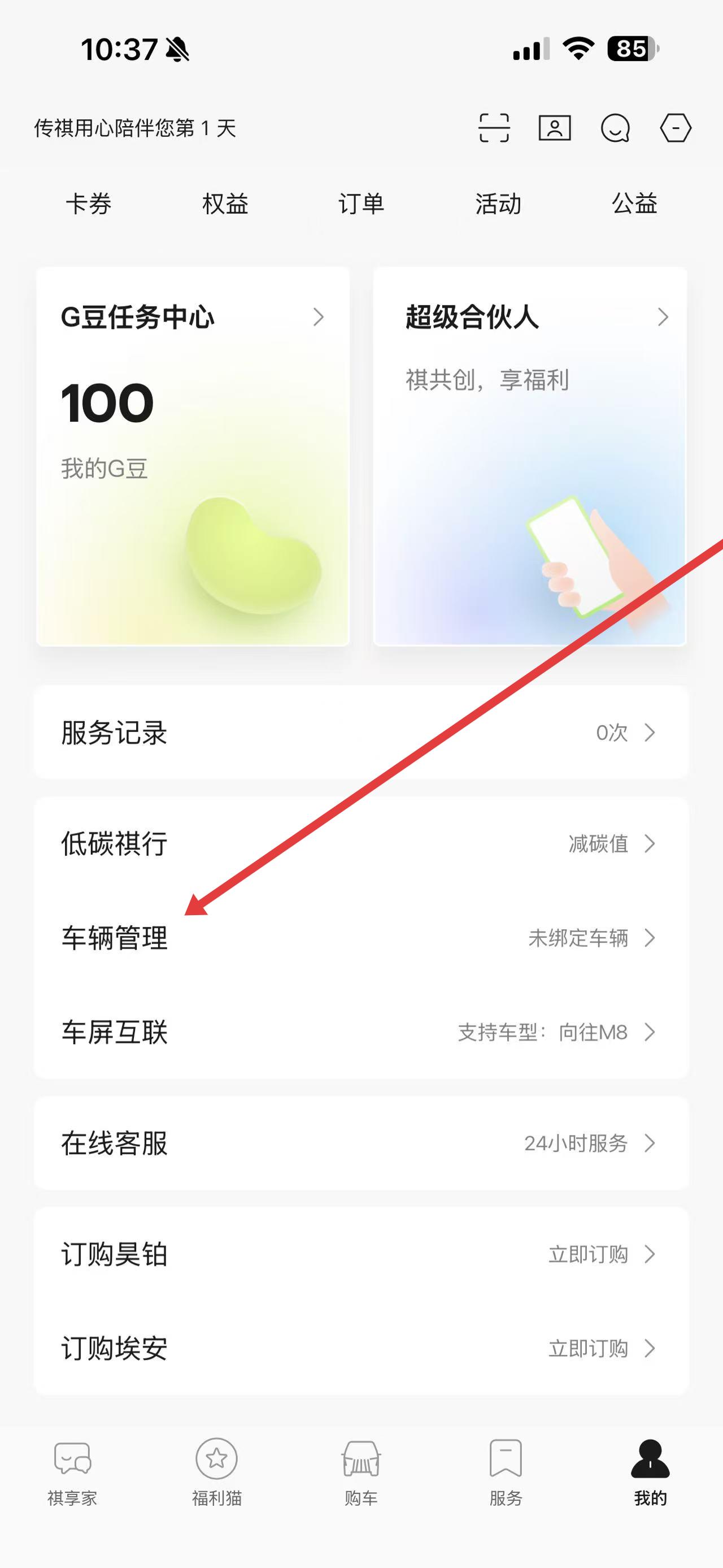 2、在我的頁面里,找到并點擊車輛管理選項,進入車輛管理界面。