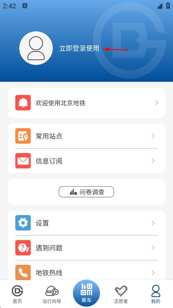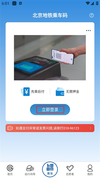 2、直接手機(jī)上就可以隨時(shí)乘坐地鐵,隨時(shí)隨地便捷的乘車服務(wù),但是在乘車之前需要先點(diǎn)擊【立即登錄】才可以解鎖自己的乘車賬號;