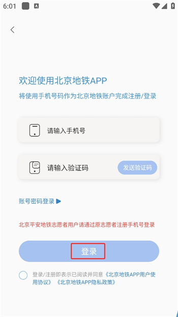 3、賬號的注冊流程也是極為簡單的,直接輸入自己的手機(jī)號,還有發(fā)送到手機(jī)短信之上的驗(yàn)證碼,然后點(diǎn)擊登錄快速注冊一個(gè)賬號;