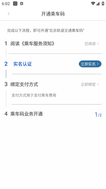 4、在這里乘車需要通過乘車碼的一整個(gè)驗(yàn)證流程,同意相關(guān)的乘車服務(wù)須知,進(jìn)行自己的實(shí)名認(rèn)證、綁定制度的渠道,之后就可以開通自己的地鐵乘車業(yè)務(wù)了。