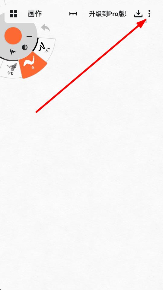 2、在繪畫的界面,需要點(diǎn)擊右上角三點(diǎn)菜單,展開功能的選項(xiàng)。