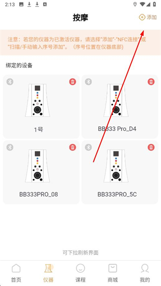 1、打開碧波庭APP,點擊導(dǎo)航欄中的儀器。