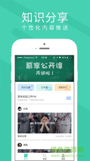 慕享是一款非常專業(yè)的教育學習知識在線共享交流平臺,內(nèi)含豐富的教育知識內(nèi)容,在線學習交流有效提高職業(yè)技能和專業(yè)水準。用戶無需受地點限制,隨時隨地都可以高效學習,開啟創(chuàng)新的學習體驗。快來綠色資源網(wǎng)下載體驗吧!