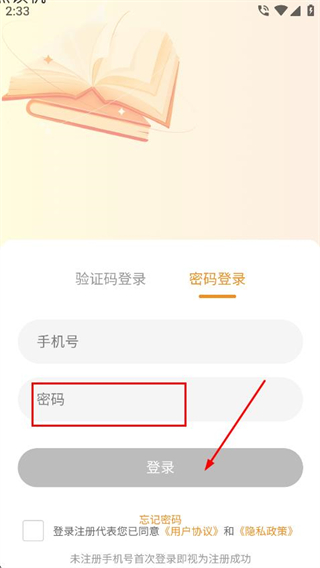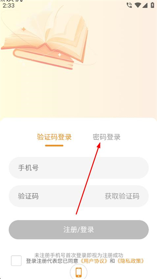 1、打開課本通app,選擇并點擊密碼登錄選項。
