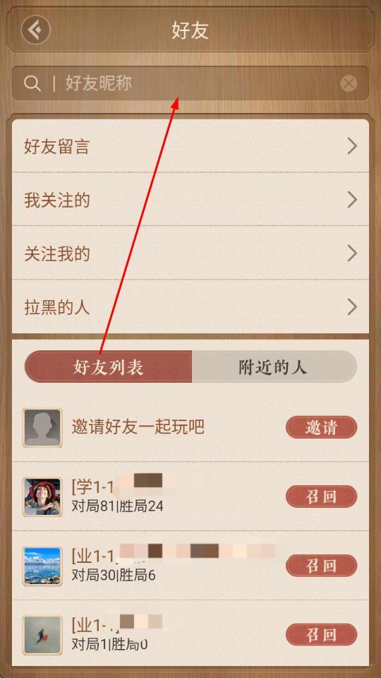 3、在搜索框中輸入好友的昵稱或者游戲ID,即可加好友。