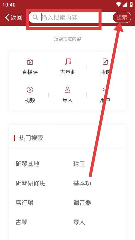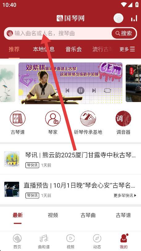 1、打開國(guó)琴網(wǎng)app,點(diǎn)擊首頁(yè)頂部的搜索框。
