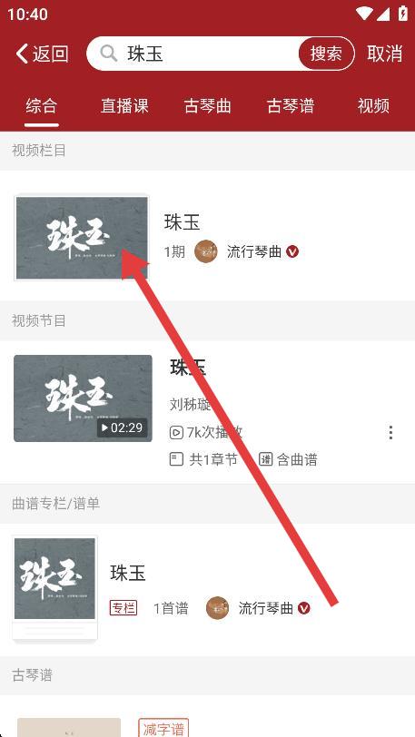 3、在搜索結(jié)果中,找到對(duì)應(yīng)的曲譜視頻欄目,點(diǎn)擊進(jìn)入。