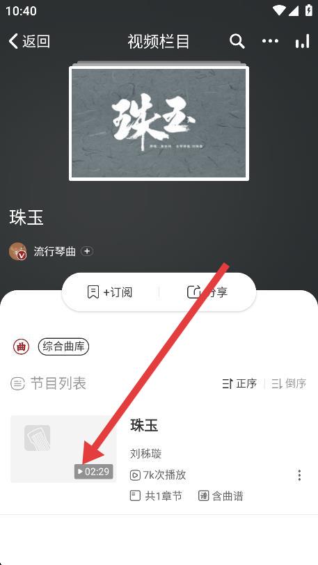 4、進(jìn)入視頻欄目頁(yè)面后,點(diǎn)擊視頻,即可觀看曲譜視頻。