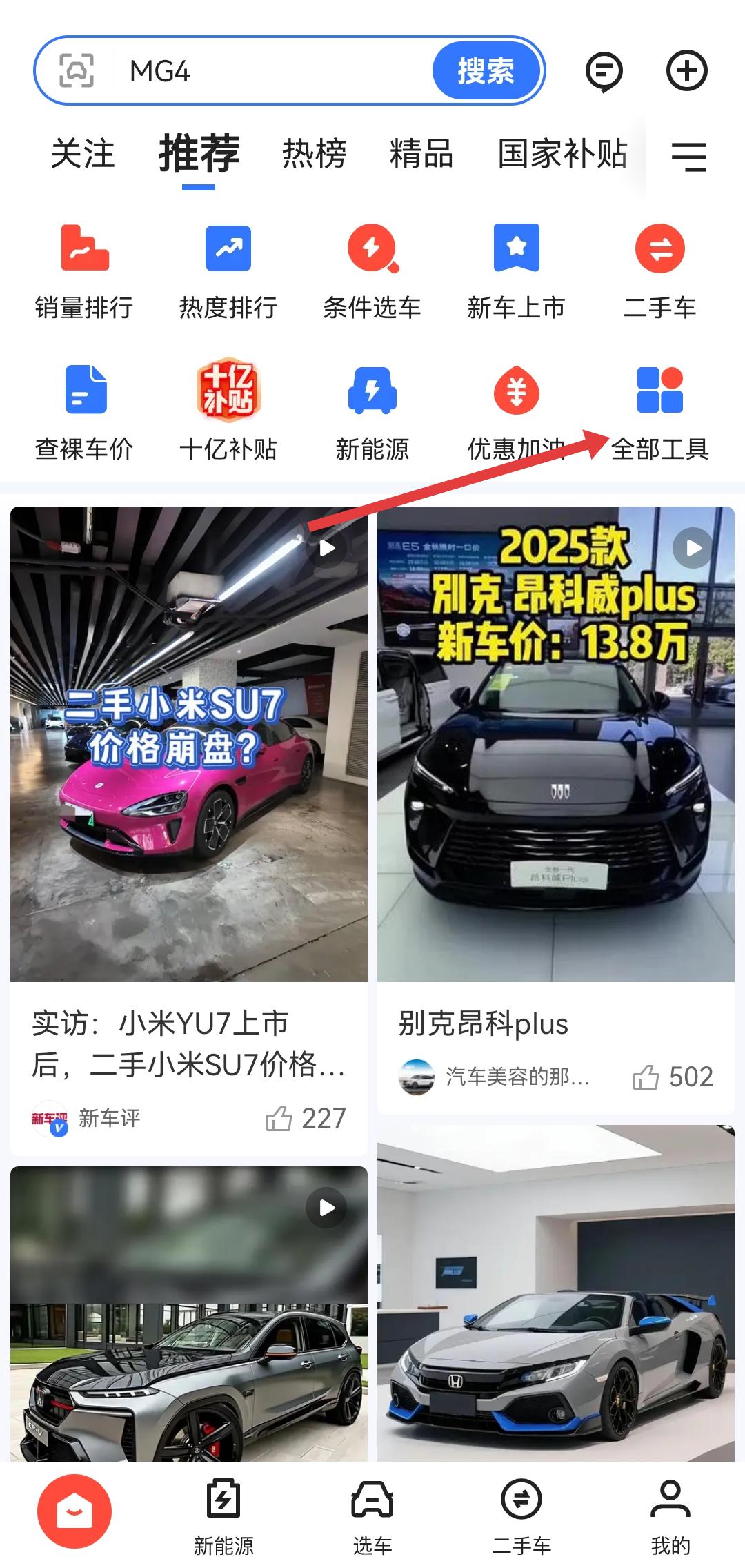 1、打開易車APP,在主界面點擊全部工具的按鈕,進入工具列表的頁面。