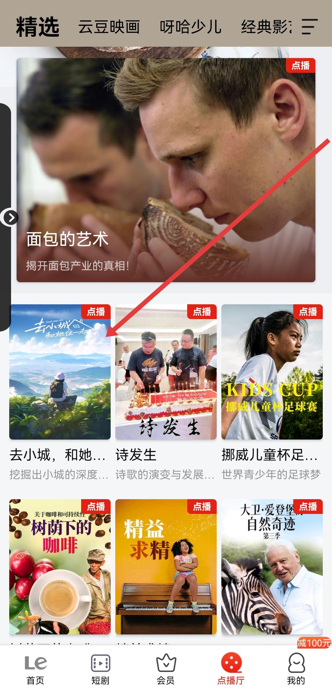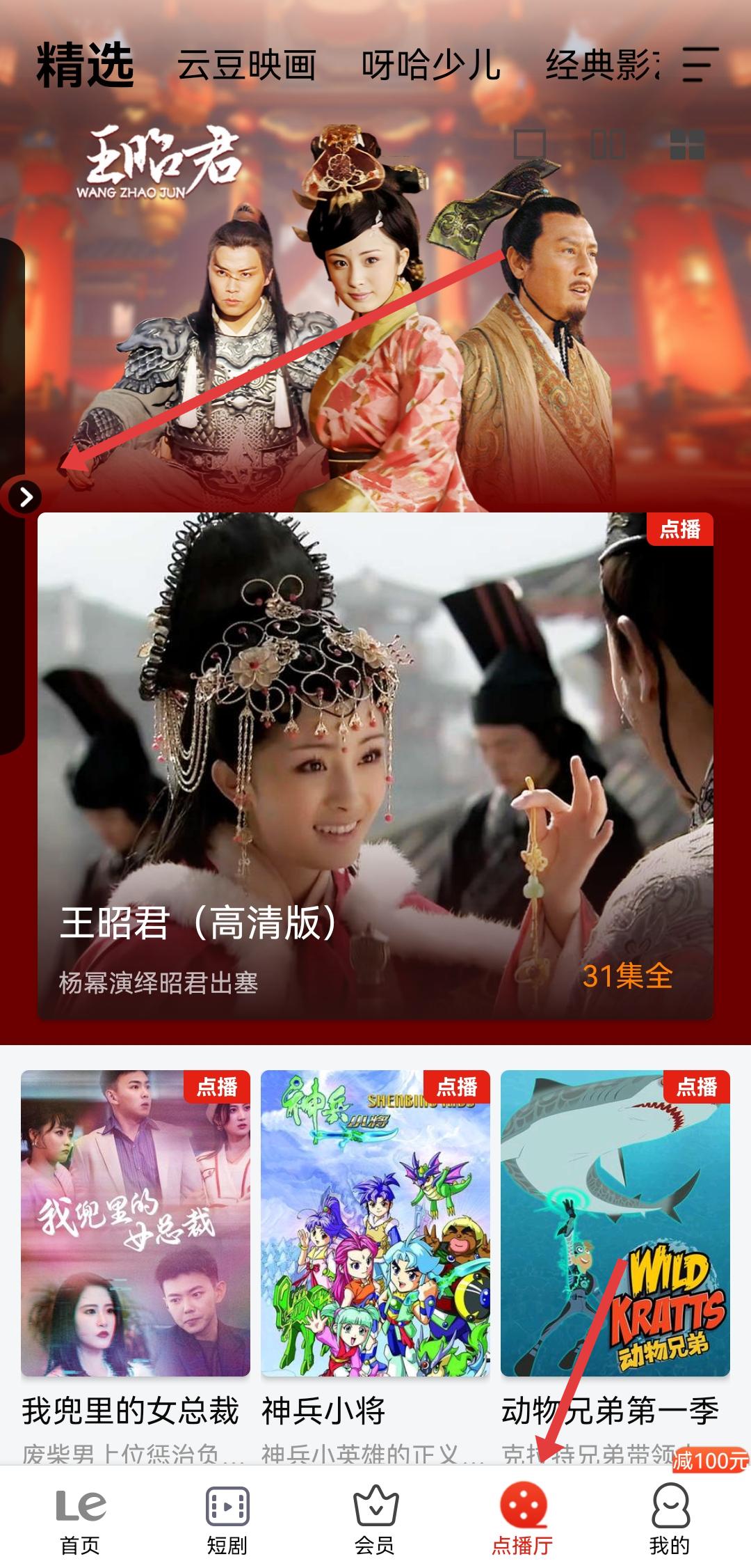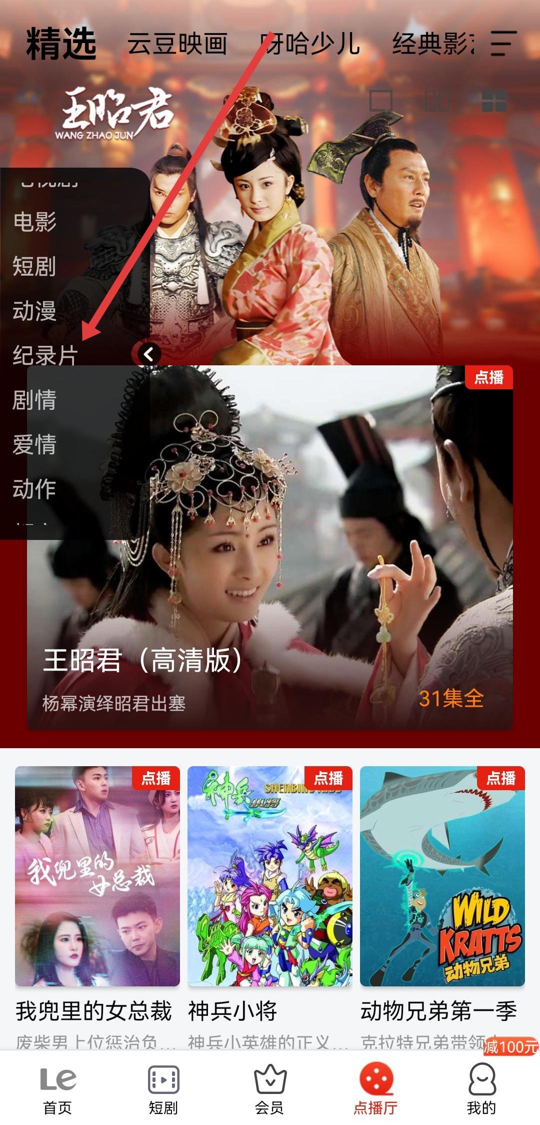 1、進(jìn)入主界面后,需要先點(diǎn)擊進(jìn)入點(diǎn)播的頁面,然后點(diǎn)擊頁面左側(cè)的分類區(qū)域。