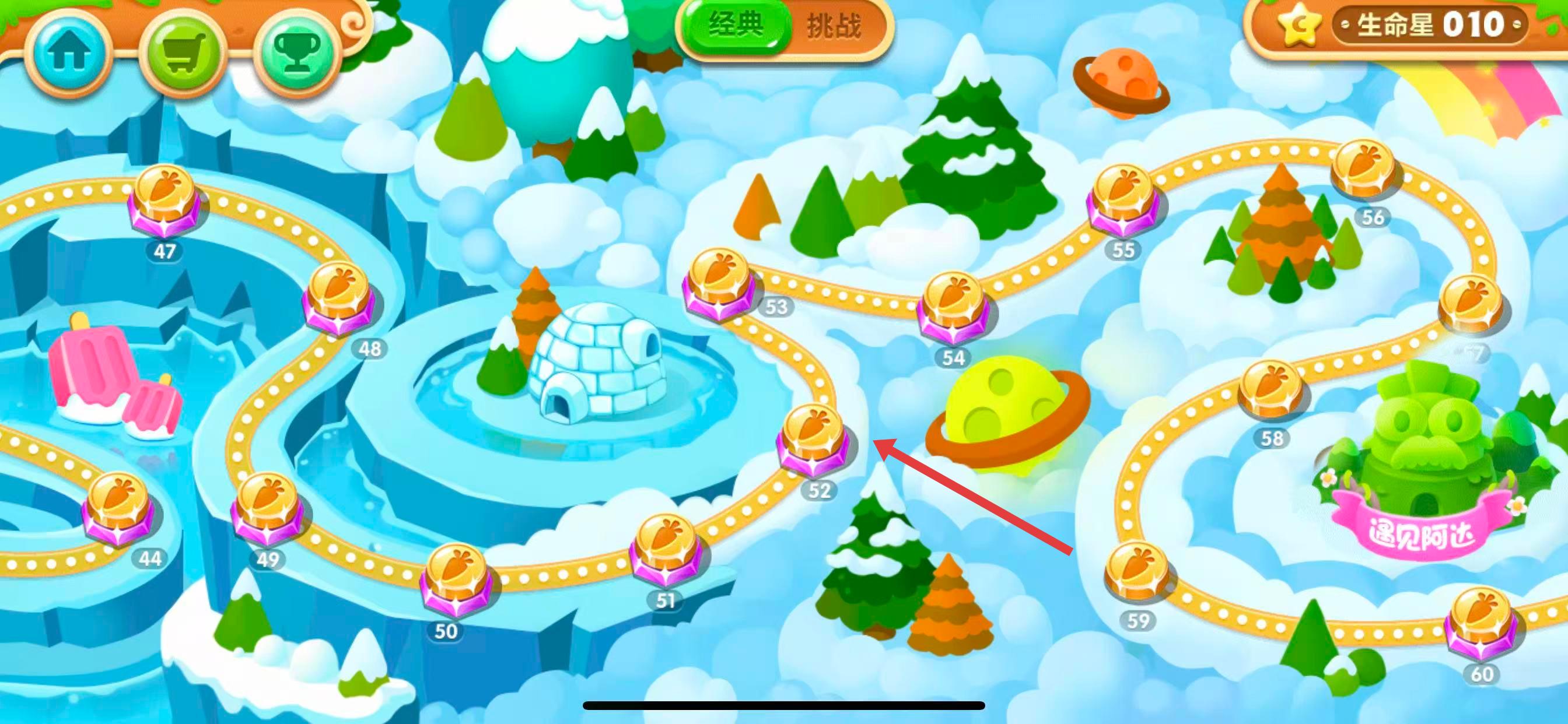 1、在保衛(wèi)蘿卜2經(jīng)典模式關(guān)卡地圖中,找到標(biāo)有52的關(guān)卡圖標(biāo),點(diǎn)擊進(jìn)入關(guān)卡詳情頁。